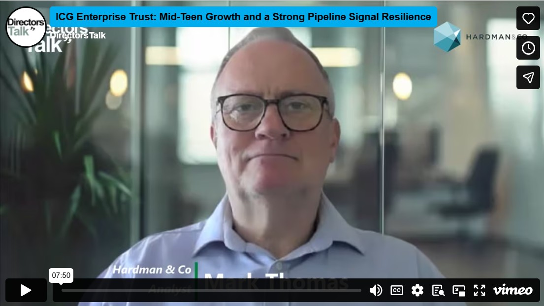 In this discussion, analyst Mark Thomas talks about ICGT’s 1HFY’26 results (to July 2025), highlighting the ongoing strength of its operating companies, which achieved an average of 15% LTM EBITDA growth and margin expansion of around 5%, supported by 10% revenue growth. Despite some short-term volatility and returns below long-term averages, the outlook remains positive, with visibility on exits and an attractive investment pipeline. Realisation proceeds of £222m already exceed FY’25 levels, averaging a 14% uplift on exit values. The report, intended only for professional investors in the UK, notes that ICGT’s constant-currency portfolio return was 2.1%, NAV per share total return -0.7%, and share price return 12.6%.