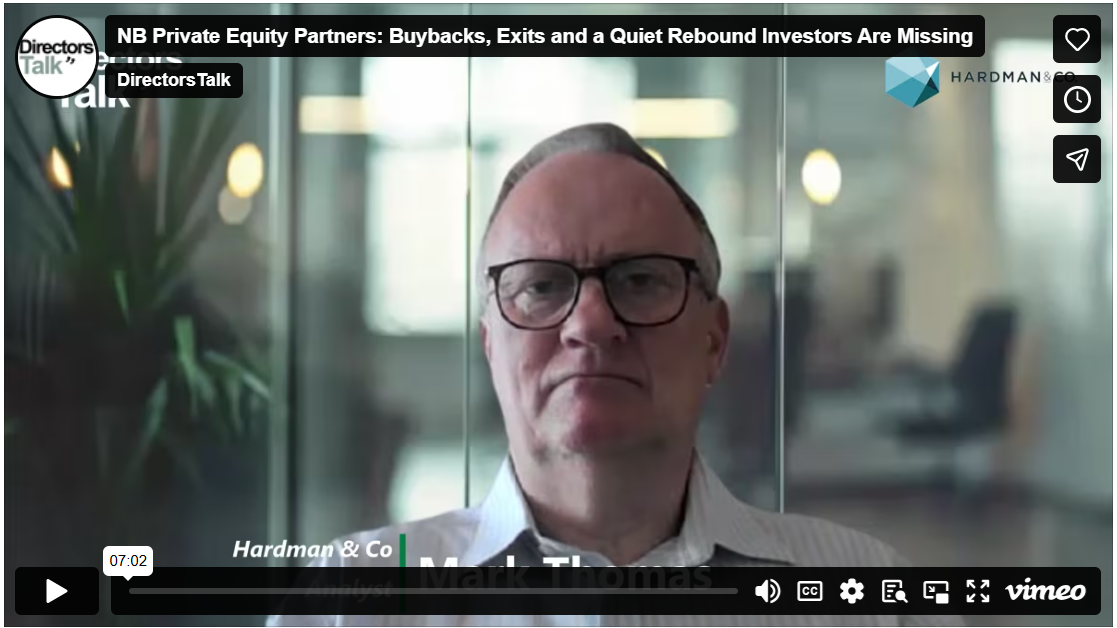 In this interview, Hardman & Co analyst Mark Thomas breaks down why NBPE’s 1H’25 results may be characterised as turning the corner. There was a modest improvement in financial performance, along with a healthier outlook for exits and a strong pipeline of mid-life co-investments already showing rapid value creation. Backed by solid liquidity, accelerating buybacks and increased allocations to new opportunities, the company is positioning itself for a stronger 2026, even though returns remain below long-term trends for now. While sentiment-driven discounts persist, recent realisations, rising exit activity and clearer operational progress suggest the underlying benefits of NBPE’s strategy may not yet be fully recognised.